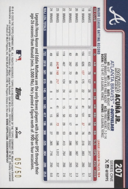Ronald Acuna Jr. 2025 Topps Series 1 Gold Foil 05/50 #207