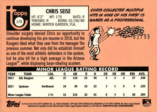 Chris Seise 2018 Topps Heritage Blue 82/99 #179