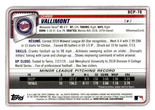 Chris Vallimont 2020 Bowman Chrome Mojo Refractor #BCP-78 #1
