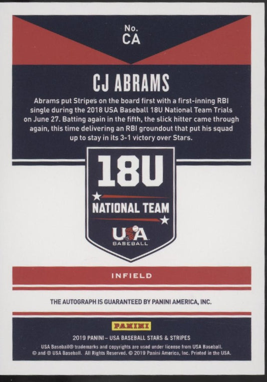 CJ Abrams 2019 Panini USA Stars & Stripes Auto 227/499 #CA