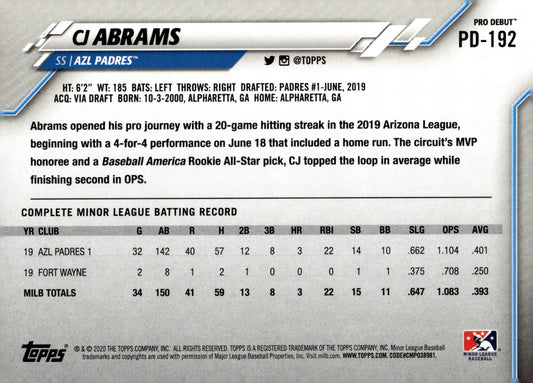 CJ Abrams 2020 Topps Pro Debut #PD-192