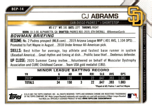CJ Abrams 2021 Bowman Chrome Prospect #BCP-14