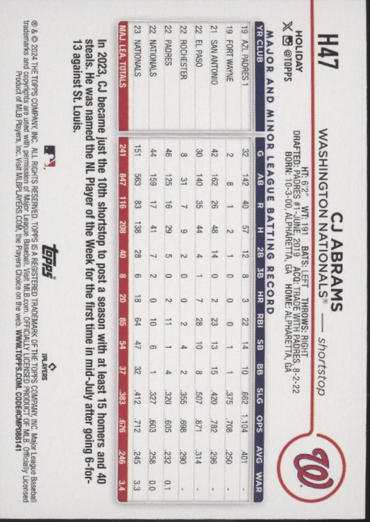 CJ Abrams 2024 Topps Holiday Blue #H47