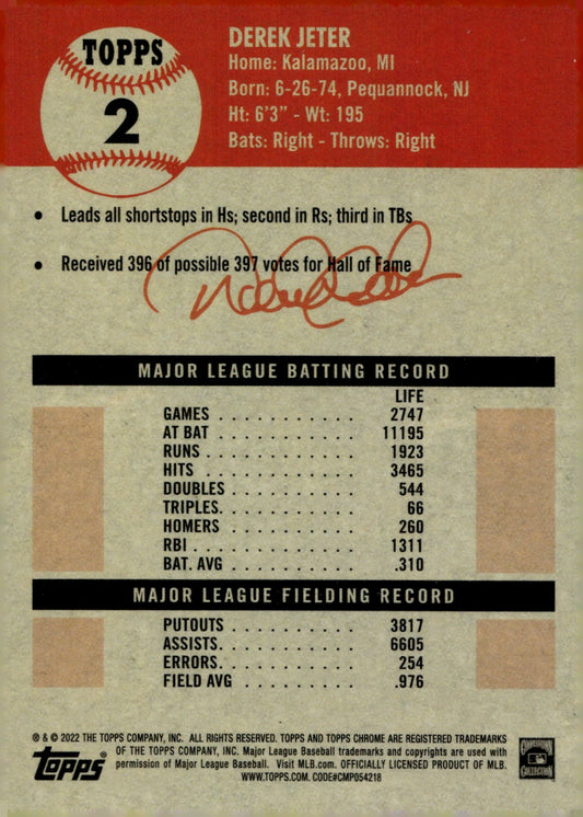 Derek Jeter 2022 Topps Series 1 Welcome to the Show #WTTS-49
