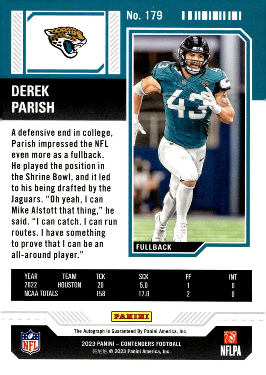 Derek Parish 2023 Panini Contenders Rookie Ticket RC Auto #179
