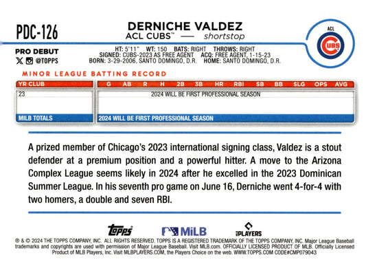 Derniche Valdez 2024 Topps Chrome Pro Debut Xfractor Refractor #PDC-126