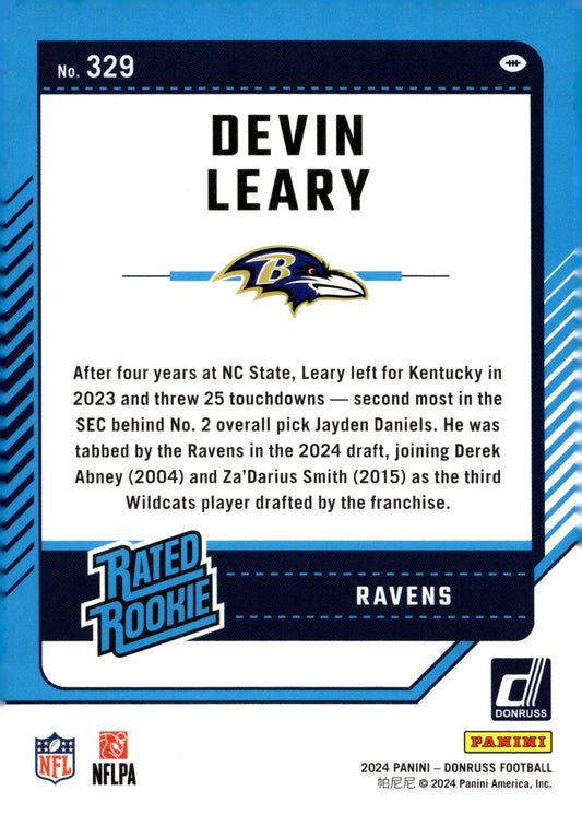 Devin Leary 2024 Panini Donruss Rated Rookie Press Proof Red RC #329