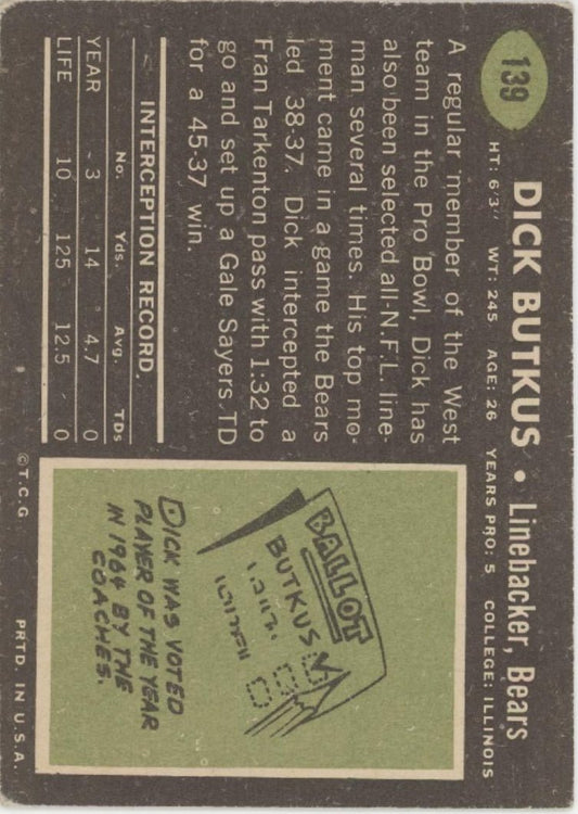 Dick Butkus 1969 Topps #139 Chicago Bears VG
