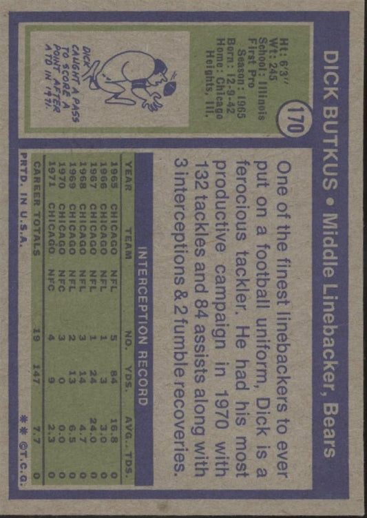 Dick Butkus 1972 Topps #170 Chicago Bears EX #2