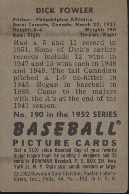 Dick Fowler 1952 Bowman #190 Philadelphia Athletics VG-EX