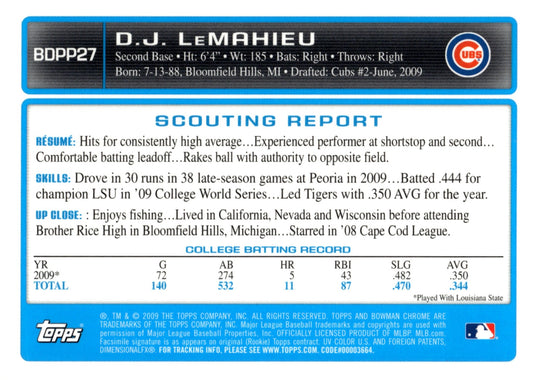 DJ LeMahieu 2009 Bowman #BDPP27 #1