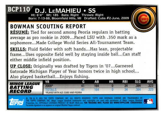 DJ LeMahieu 2010 Bowman Chrome #BCP110