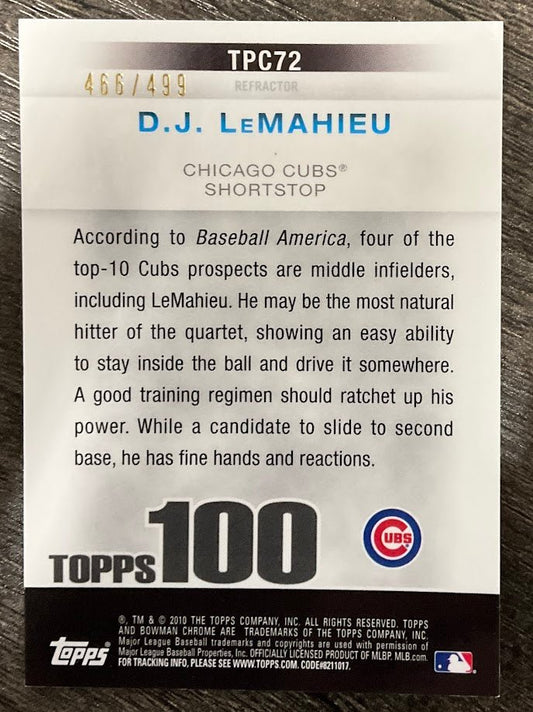 DJ LeMahieu 2010 Bowman Chrome Topps 100 Refractor 466/499 #TPC72