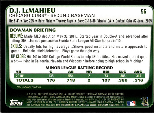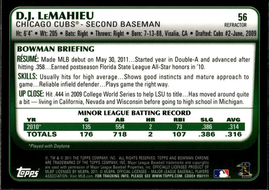 DJ LeMahieu 2011 Bowman Chrome Refractor RC #56