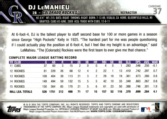 DJ LeMahieu 2016 Topps Chrome Refractor #37
