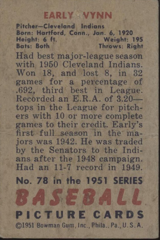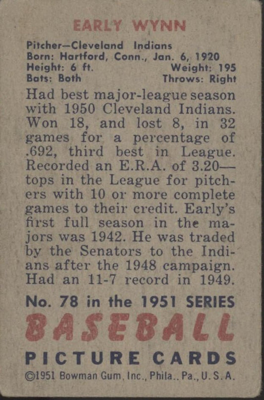 Early Wynn 1951 Bowman #78 Cleveland Indians GD