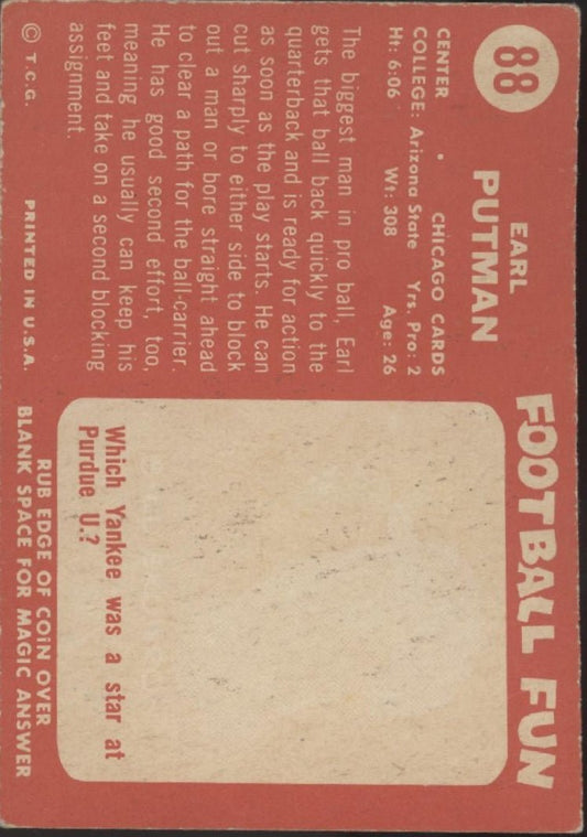 Earl Putman 1958 Topps RC #88 Chicago Cardinals VG-EX