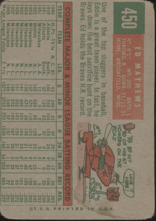 Ed Mathews 1959 Topps #450 Milwaukee Braves PR