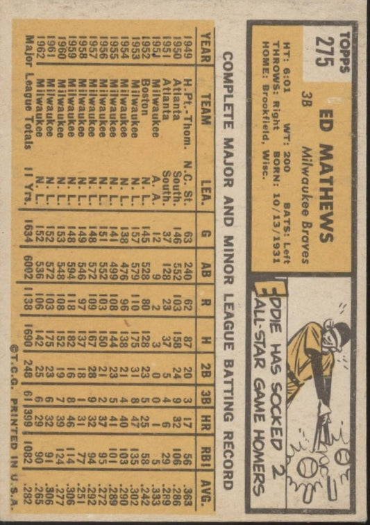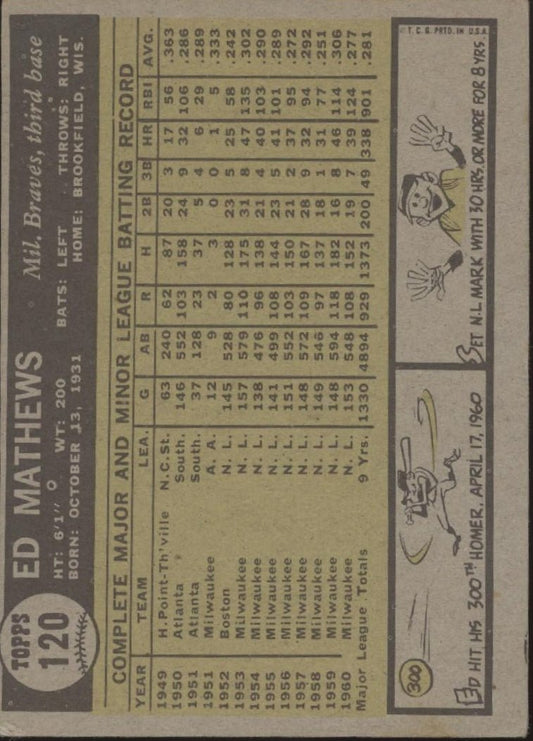 Ed Mathews 1961 Topps #120 Milwaukee Braves GD