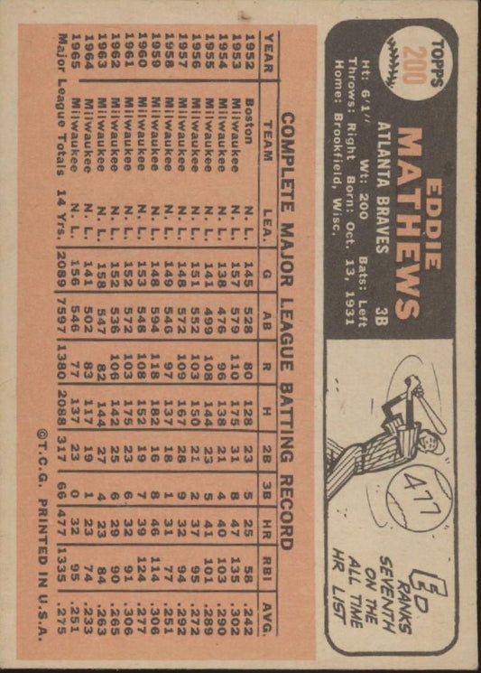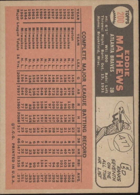 Ed Mathews 1964 Topps #35 Milwaukee Braves GD