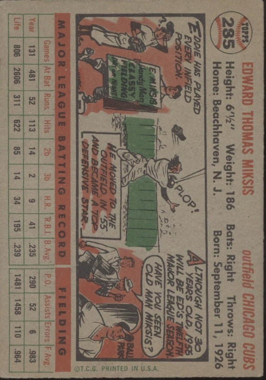 Eddie Miksis 1955 Bowman #181 Chicago Cubs VG-EX