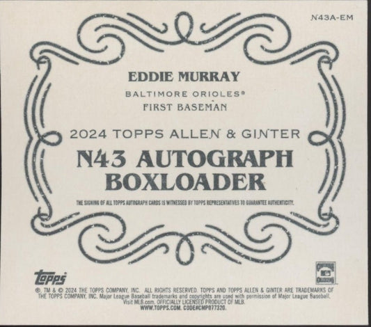 Eddie Murray 2024 Topps Allen & Ginter N43 Boxloader Auto 21/25 #N43A-EM