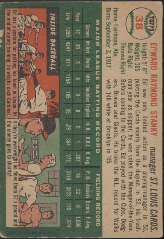 Eddie Stanky 1954 Topps #38 St. Louis Cardinals VG