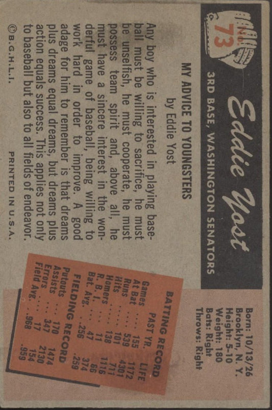 Eddie Yost 1955 Bowman #73 Washington Senators VG