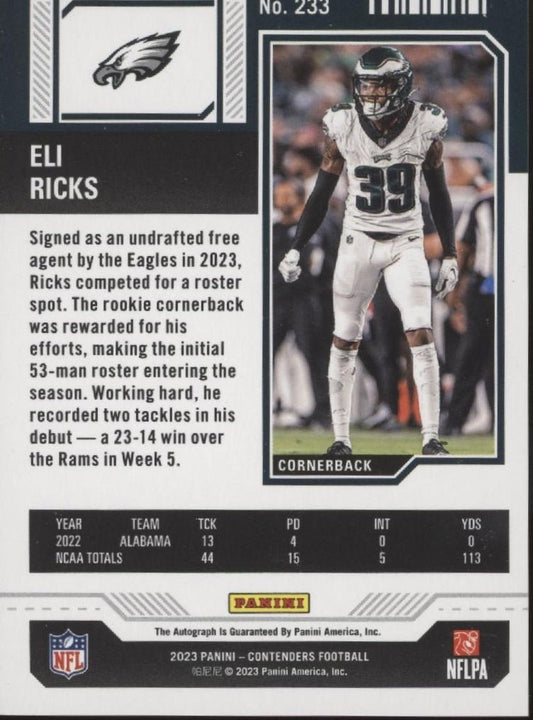 Eli Ricks 2023 Panini Contenders Rookie Ticket RC Auto #233