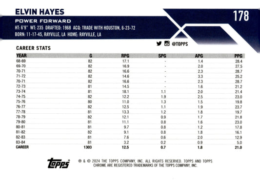 Elvin Hayes 2024-25 Topps Inception Memory Lane Marks Auto #Mlm-EH