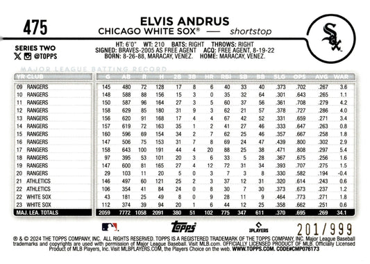 Elvis Andrus 2024 Topps Series 2 Blue Foil 201/999 #475