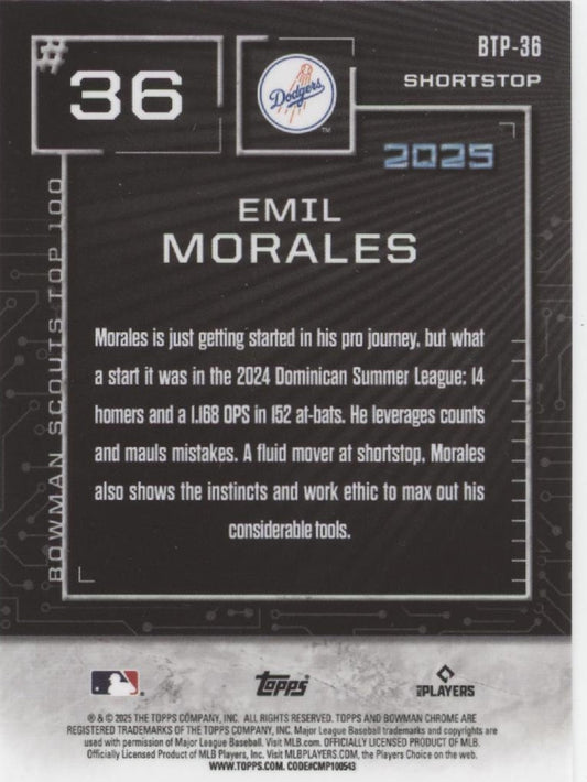 Emil Morales 2025 Bowman Chrome Top 100 Refractor #BTP-36