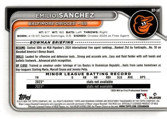 Emilio Sanchez 2024 Bowman Chrome Aqua Mojo Refractor 251/299 #BCP-241