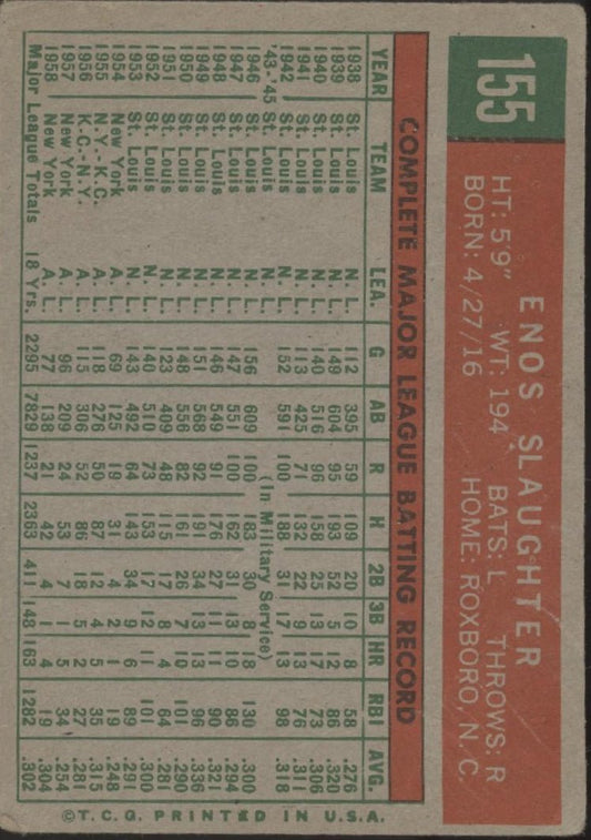 Enos Slaughter 1959 Topps #155 New York Yankees GD
