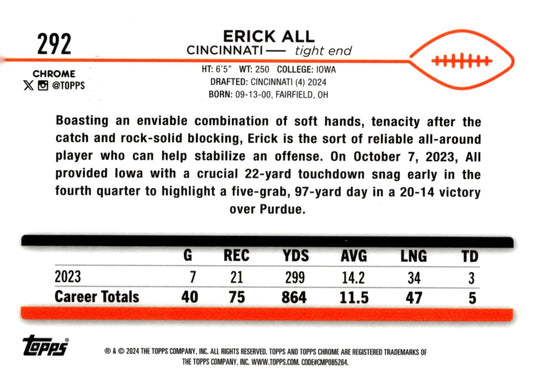 Erick All 2024 Topps Chrome Aqua Refractor RC 162/199 #292