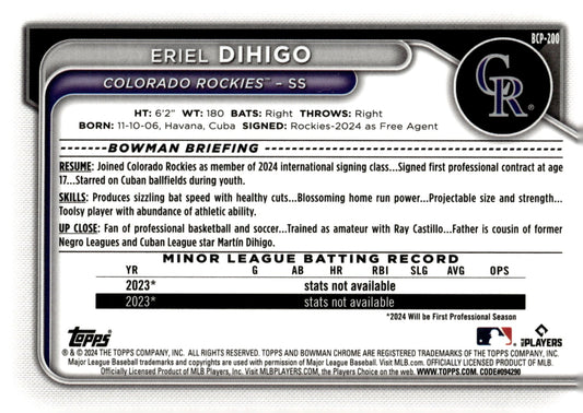 Eriel Dihigo 2024 Bowman Chrome Mojo Refractor #BCP-200
