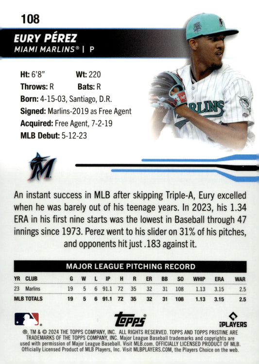 Eury Perez 2024 Topps Pristine Green Refractor 065/150 #108