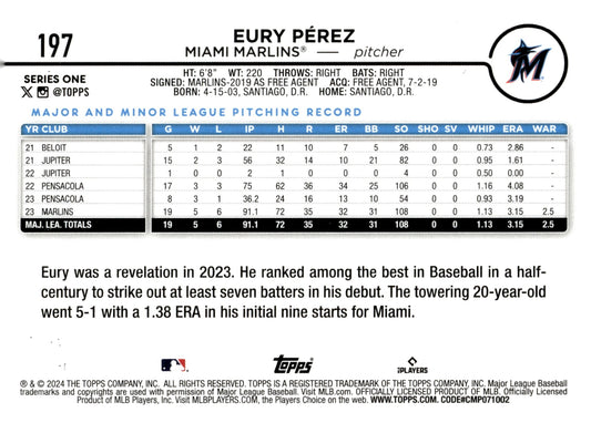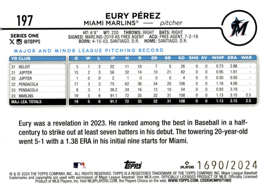 Eury Perez 2024 Topps Series 1 Future Stars Gold 1690/2024 #197
