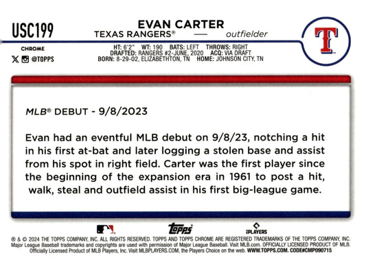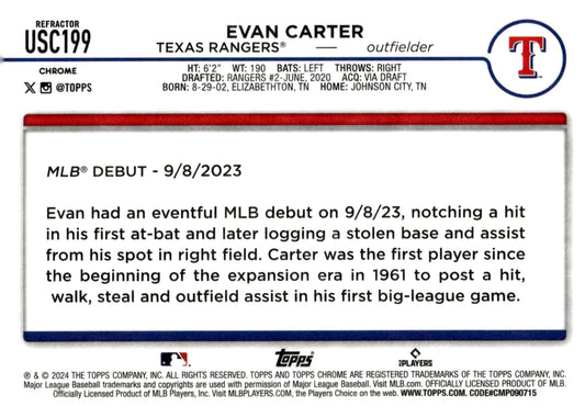 Evan Carter 2024 Topps Chrome Refractor RC #USC199