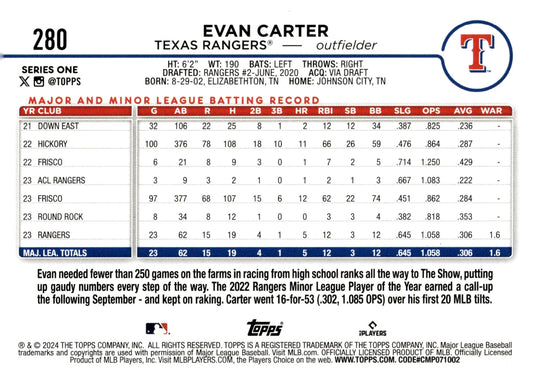 Evan Carter 2024 Topps Series 1 RC #280