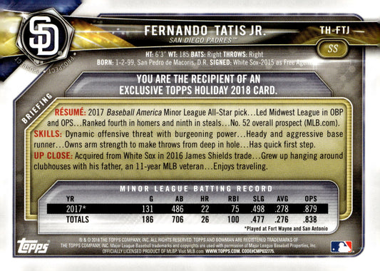 Fernando Tatis Jr. 2018 Bowman Holiday Prospect #TH-FTJ