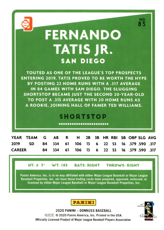 Fernando Tatis Jr. 2020 Panini Donruss El Nino Blue Holo #83