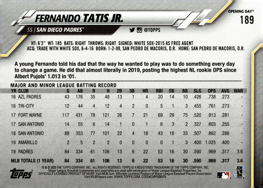 Fernando Tatis Jr. 2020 Topps Opening Day #189