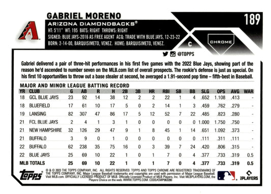 Gabriel Moreno 2023 Topps Chrome Logo Refractor RC #189