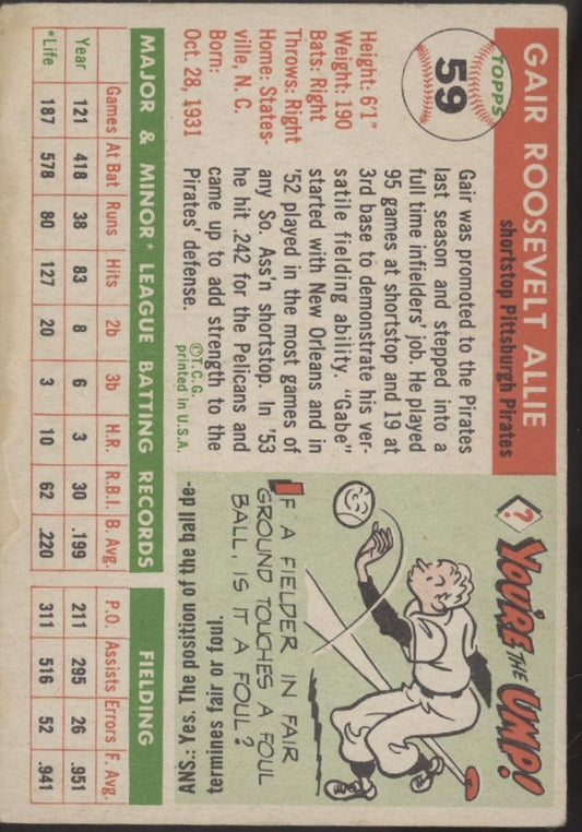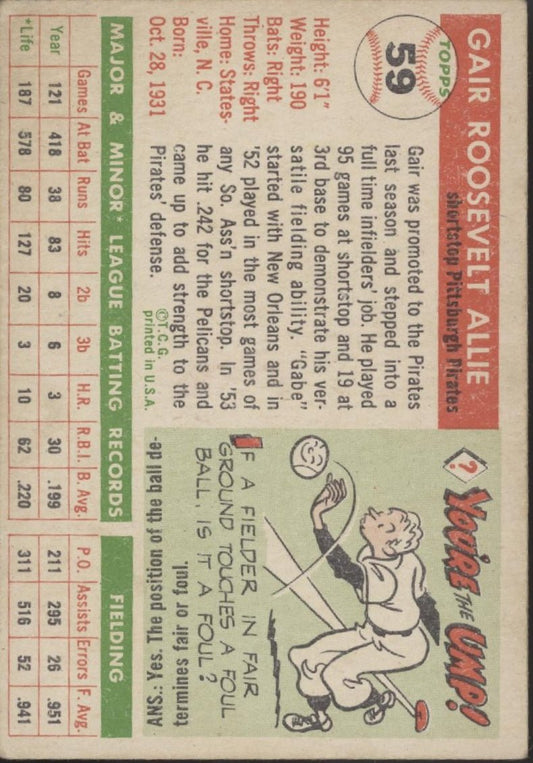 Gair Allie 1955 Topps #59 Pittsburgh Pirates VG #1
