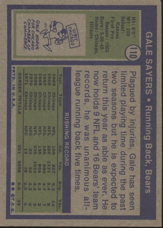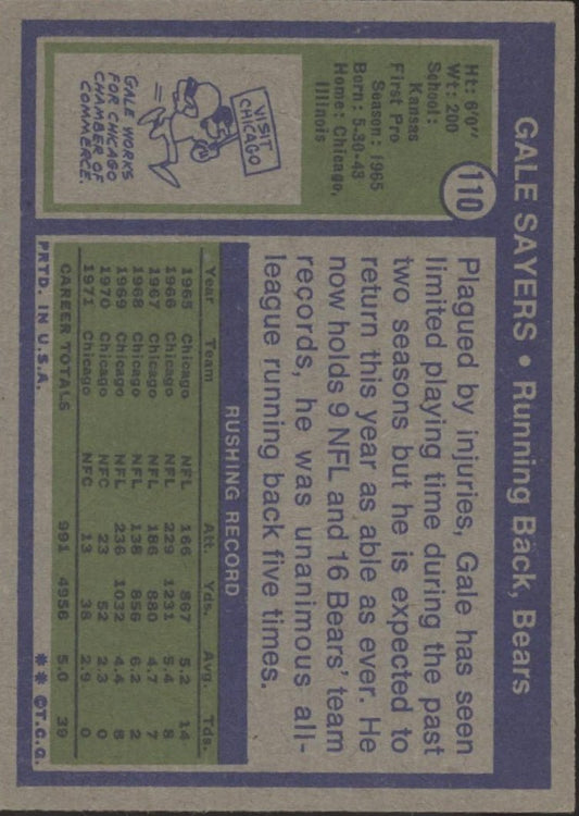 Gale Sayers 1972 Topps #110 Chicago Bears EX #1