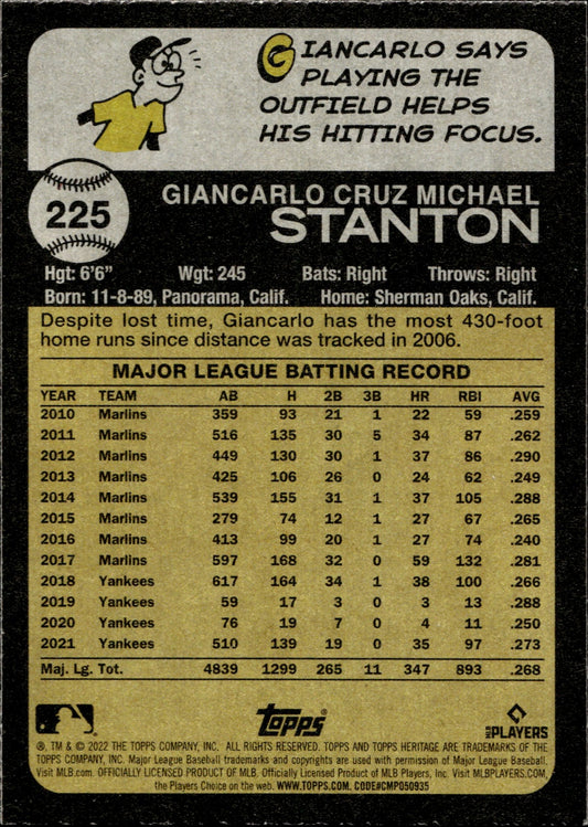 Giancarlo Stanton 2022 Topps Chrome Heritage Purple Refractor #225