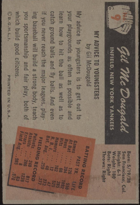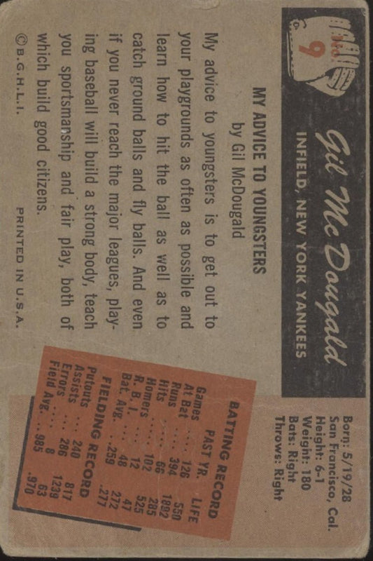 Gil McDougald 1955 Bowman #9 New York Yankees VG #2Regular price $5.00Regular priceUnit price per