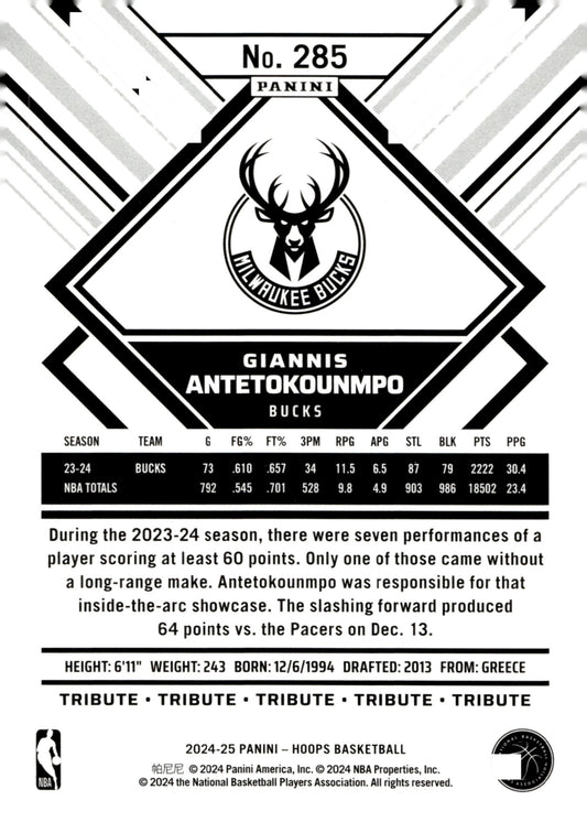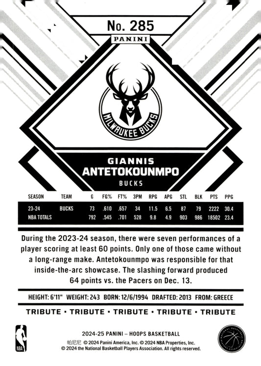 Giannis Antetokounmpo 2024-25 Panini Hoops #285 #2Regular price $1.00Regular priceUnit price per-