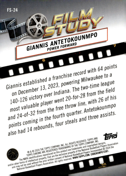 Giannis Antetokounmpo 2024 Topps Chrome Film Study Refractor #FS-24Regular price $1.00Regular priceUnit price per